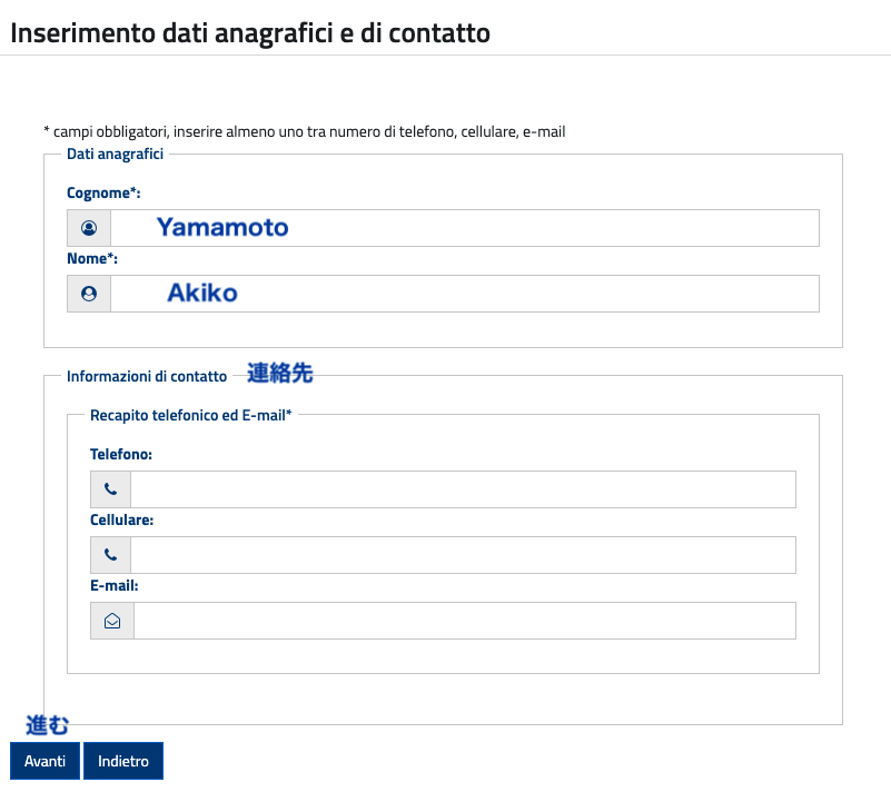 Step 2: 個人情報・連絡先を入れる