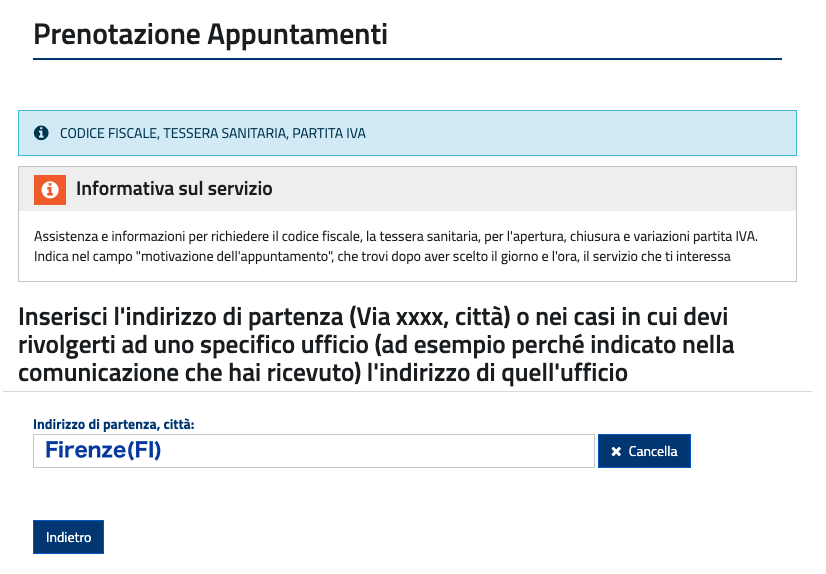 イタリアの税務署(Agenzia Entrate)の予約ページに行く.